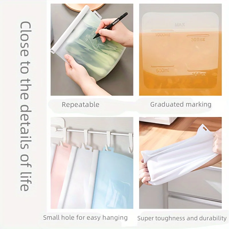1/3/4 Pcs Silicone Food Storage Bags, Leakproof and Sealable, for Vegetables and Fruits,Freezer Safe,Kitchen Organization
