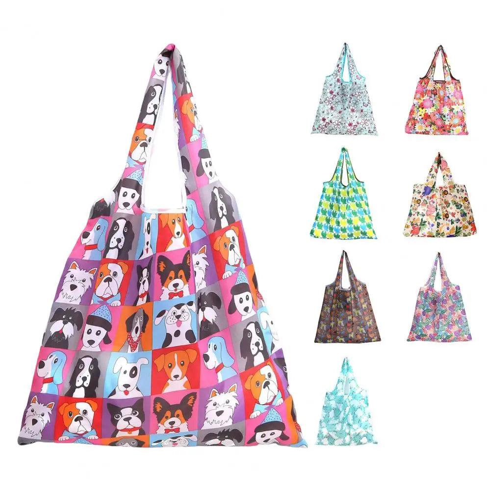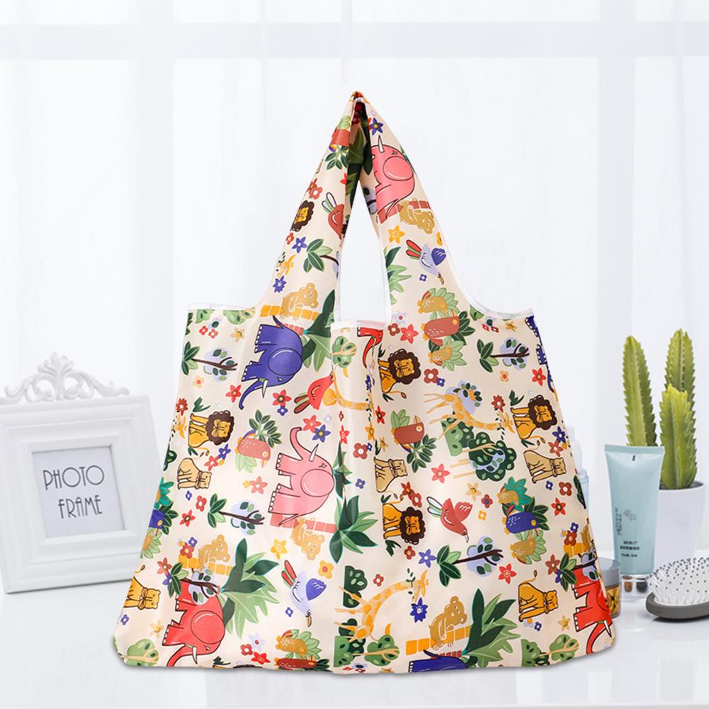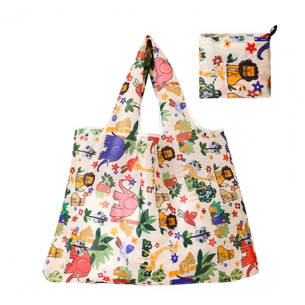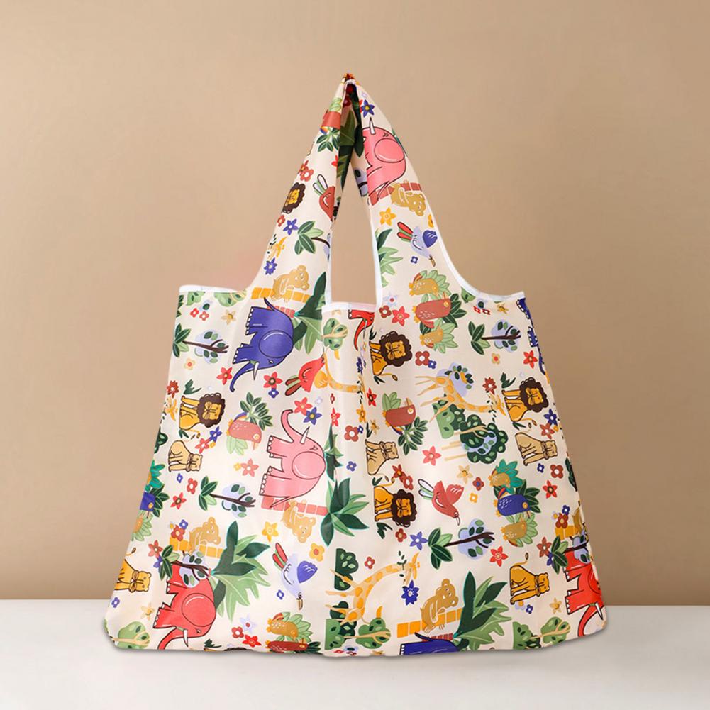 Tote Bag Eco-friendly Large Capacity Portable Print Square Storage Polyester Foldable Design Beach Bag Vacation Use