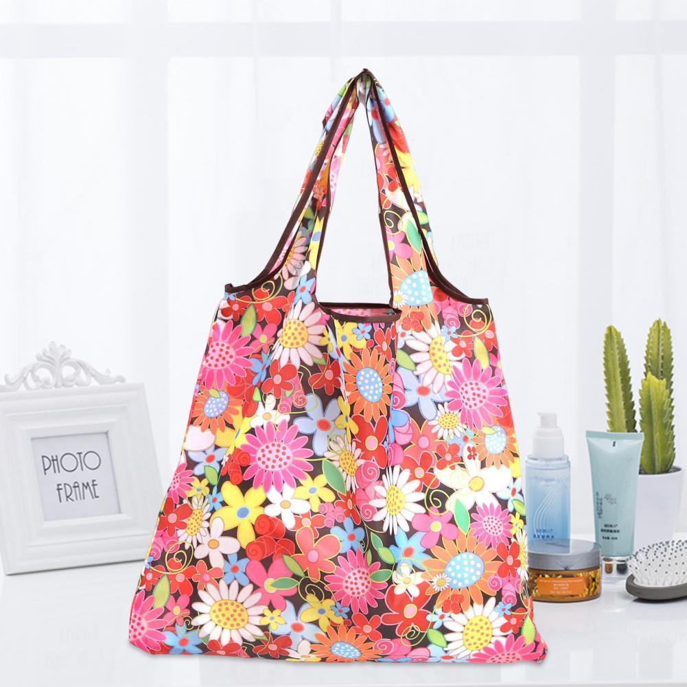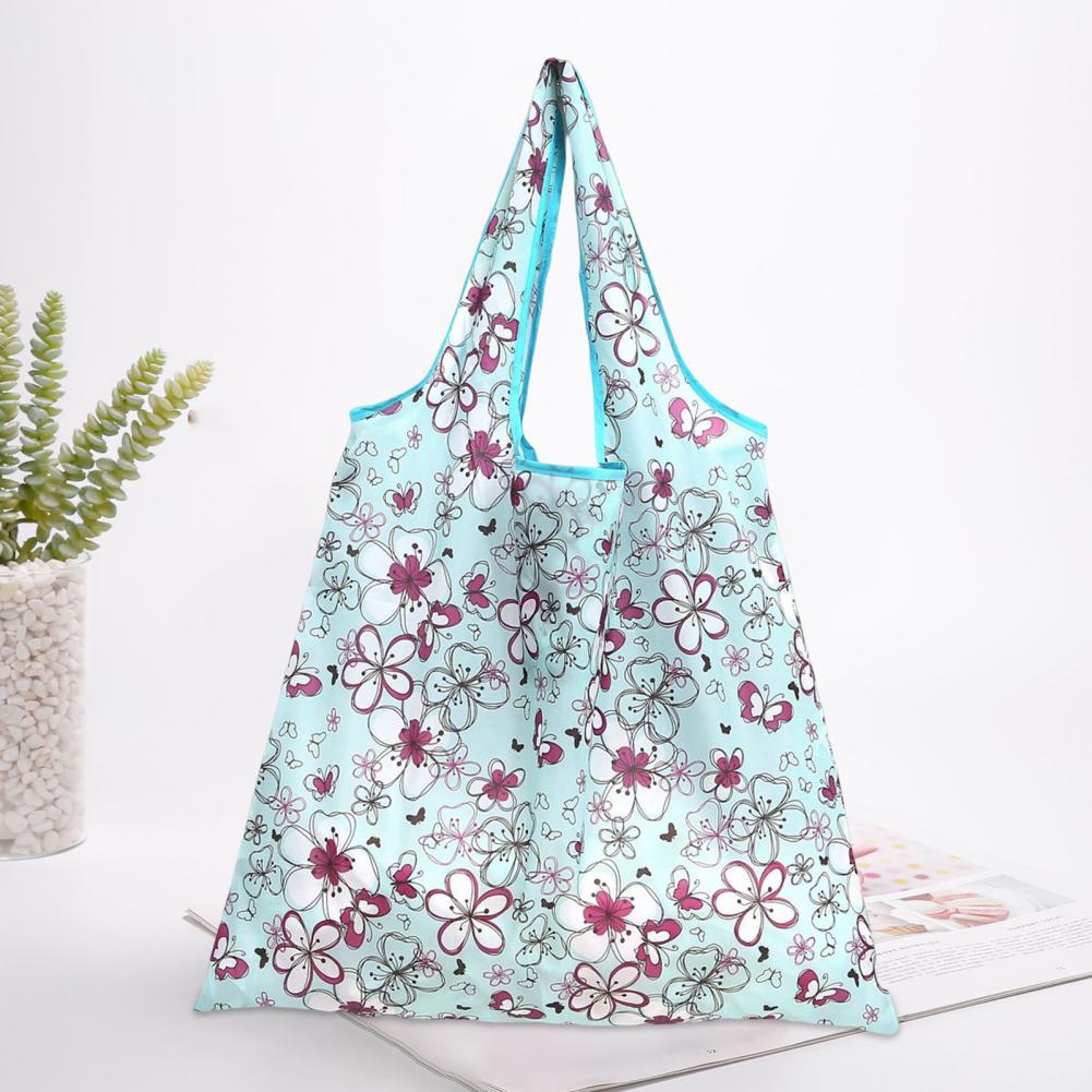 Cute Flower Cartoon Print Tote Bag Eco-friendly Large Capacity Handbag Storage Pouch Foldable Beach Bag Square
